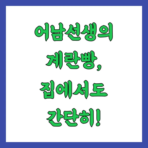 자, 이제 모두가 궁금해하시던 어남선생표 계란빵 레시피 대공개 시간입니다! (두둥!) 기존 계란빵 레시피와 비교불가! 맛과 영양, 그리고 간편함까지 모두 잡은 마법같은 레시피를 지금 바로 확인해보세요! 자세한 설명과 함께라면 요리 초보도 셰프처럼 멋지게 만들 수 있다는 사실~! ^^